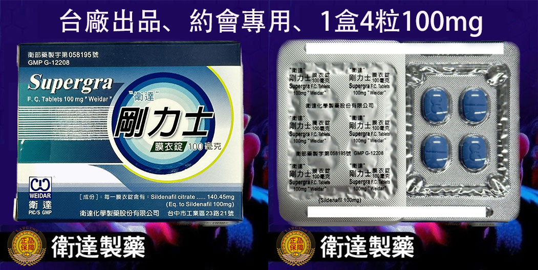 剛力士 100mg Supergra 強效助勃膜衣錠 4錠裝丨原廠正品